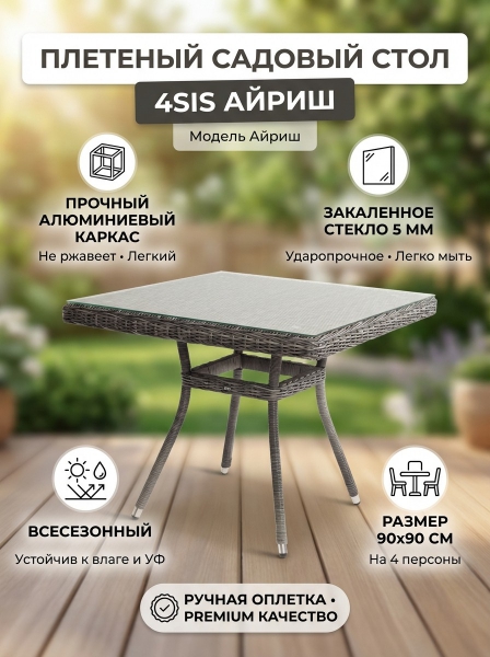 Стол плетеный из искусственного ротанга 4SIS «Айриш» - ОписаниеПлетеный садовый стол «Айриш» для обустройства обеденной зоны на открытом пространстве.