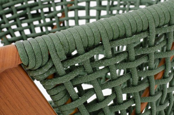 Стул 4SIS "Амстердам" роуп зеленый круглый - ОписаниеСтул «Амстердам» для обустройства обеденной или лаунж-зоны. Изготовлен из алюминиевого каркаса, оплетенного вручную эластичными синтетическими лентами из высокопрочных полиэфирных волокон. Роуп является гипоаллергенным, прочным, износостойким и устойчивым к ультрафиолету. Приятный на ощупь и напоминает шерстяное плетение. Цвет каркаса – «под дерево», оплетки - зеленый. На ножках стула идут черные пластиковые наконечники (заглушки).