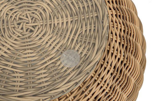 Кофейный столик 4SIS "Барселона" из искусственного ротанга, цвет соломенный - ОписаниеКруглый кофейный столик «Барселона» для создания небольшой зоны отдыха в саду или на открытом балконе. Каркас изготовлен из легкого алюминия и оплетен искусственным ротангом натурального соломенного оттенка. Поверхность столика дополнена стеклянной столешницей из закаленного стекла, толщиной 5 мм.