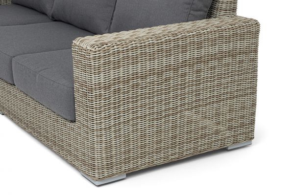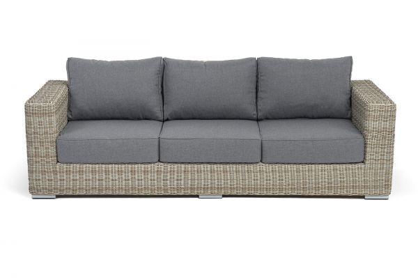 Диван трехместный 4SIS Боно диван из искусственного ротанга трехместный, цвет бежевый - ОписаниеДиван «Боно» подходит для размещения сразу трех персон. Его основа из прочного алюминиевого каркаса. Размер модели – 2300×900×775 мм, толщина подушки: 150 мм, вес: 45 кг.