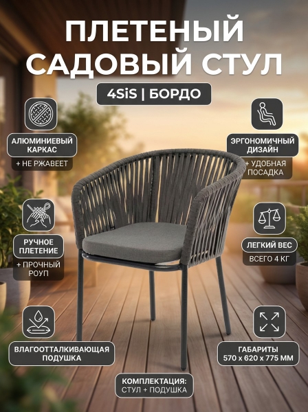 Стул плетеный из роупа 4SIS «Бордо» каркас алюминий темно-серый (RAL7024) - Преимущества
