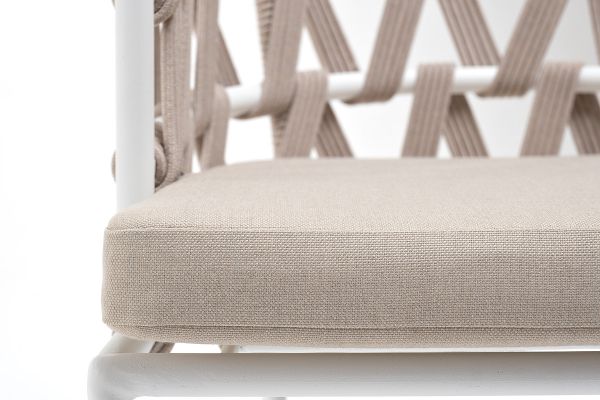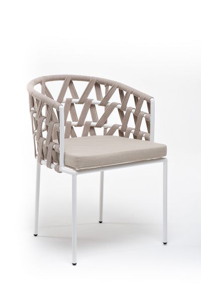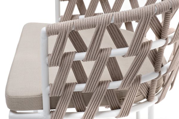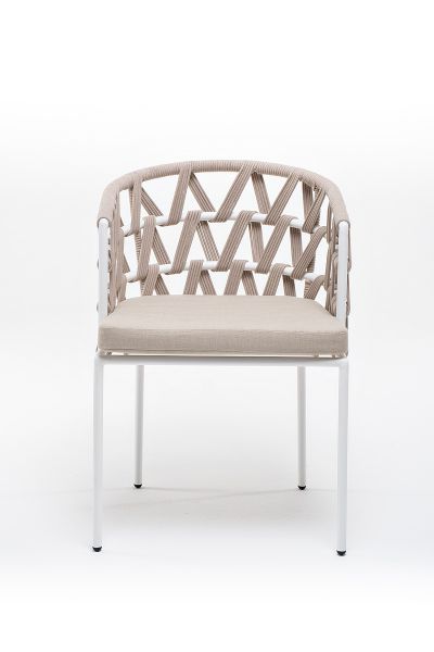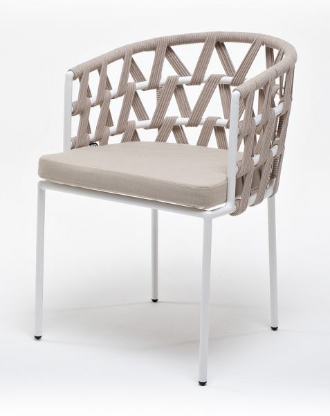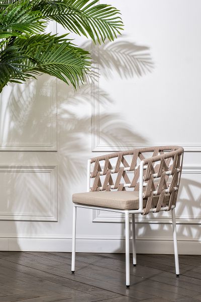 Стул 4SIS Диего плетеный, каркас из стали, роуп бежевый круглый - ОписаниеСтул «Диего» изготовлен из стального каркаса, окрашенного порошковой износостойкой краской белого цвета.