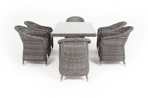 В комплекте: - прямоугольный обеденный стол «Латте», размером - 1600х900х750 мм - 6 кресел «Равенна» с габаритами 680×570×810 мм