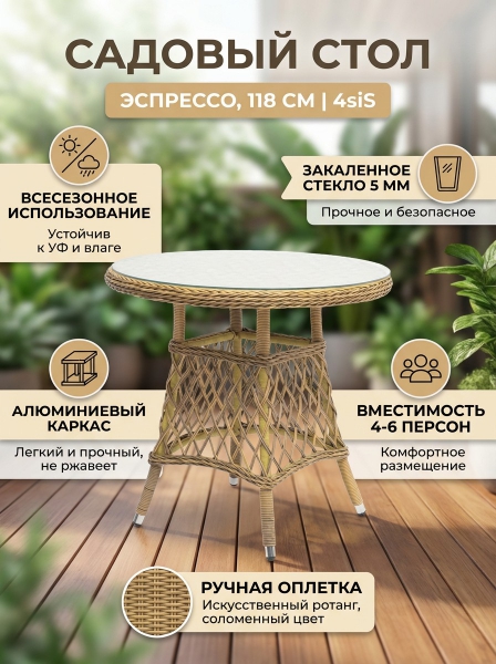 Плетеный круглый стол 4SIS «Эспрессо» 118 см - БрендСтрана бренда: Россия Премиальность бренда:Плетеный круглый стол 4SIS «Эспрессо» 118 см - Характеристики