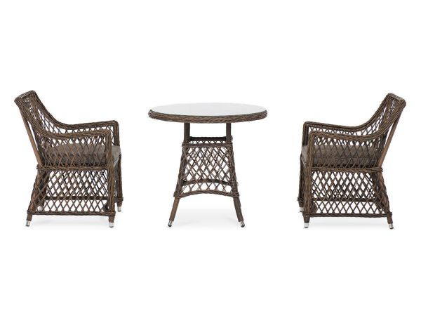 Обеденная группа плетеная 4SIS «Эспрессо-80 L» - ОписаниеКомплект "Эспрессо-80 L" можно использовать в качестве обеденной группы на 2 персоны или как кофейный комплект на балконе или террасе. В плетеный комплект входит круглый стол «Эспрессо» диаметром 80 см с ударопрочной стеклянной столешницей и 2 кресла коллекции «Латте» 680×550×840 мм.