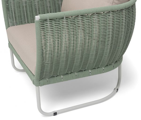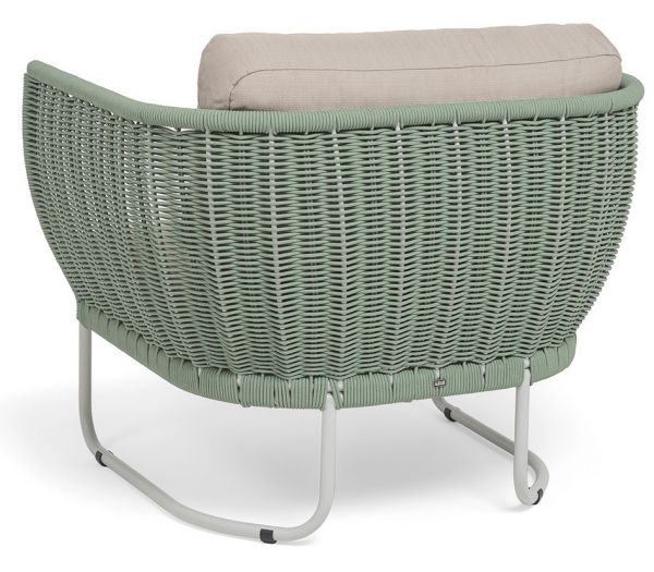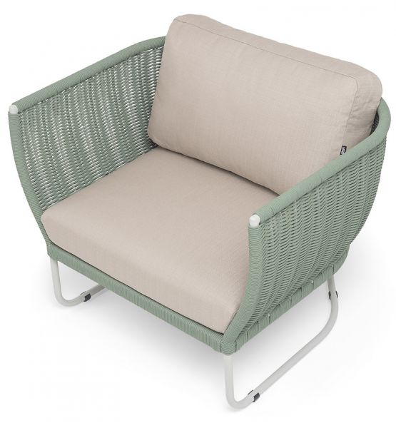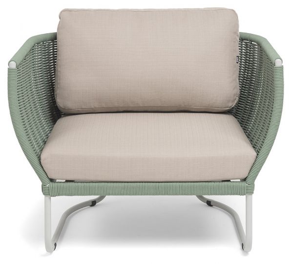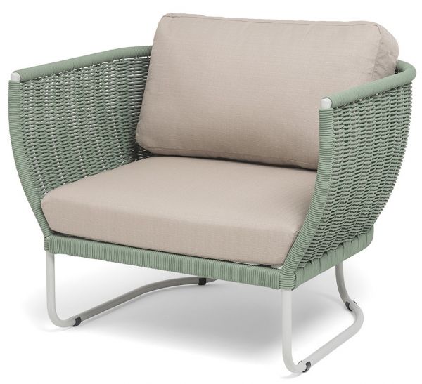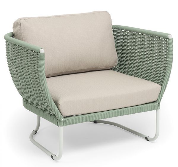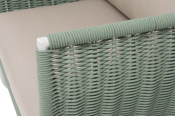 Кресло плетеное из роупа 4SIS Фиджи - ОписаниеПлетеное кресло «Фиджи» с комплектом подушек — идеальное решение для кафе, ресторана или зоны отдыха на открытой веранде. Мягкие подушки добавляют уюта и делают пребывание в кресле по настоящему комфортным. Каркас выполнен из алюминия и окрашен порошковой краской в светло-серый (RAL7035) цвет. Плетение боковины каркаса вручную оплетены роупом — эластичными синтетическими лентами из высокопрочных полиэфирных волокон. Оплетка - круглый tex, что придает креслу изысканный и оригинальный внешний вид. В комплект входят подушки с плотным наполнителем и съемными чехлами. Чехлы изготовлены из материала Mossle бежевого цвета, обработаны влагоотталкивающей пропиткой. Тип ткани - рогожка.
