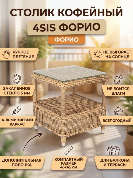 Столик кофейный из искусственного ротанга 4SIS «Форио» - БрендСтрана бренда: Россия Премиальность бренда:Столик кофейный из искусственного ротанга 4SIS «Форио» - Характеристики