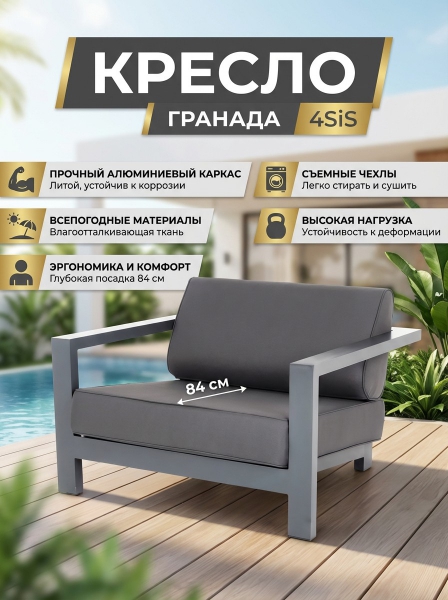 Кресло 4SIS "Гранада" алюминиевое, темно-серый (RAL7024) муар, ткань темно-серая 027