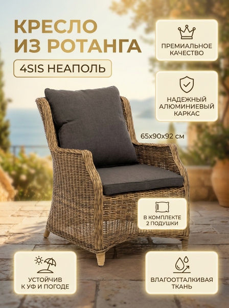Стул 4SIS "Неаполь", ротанг бежевый - ОписаниеСтул «Неаполь» имеет практичные подлокотники для удобного размещения во время отдыха.