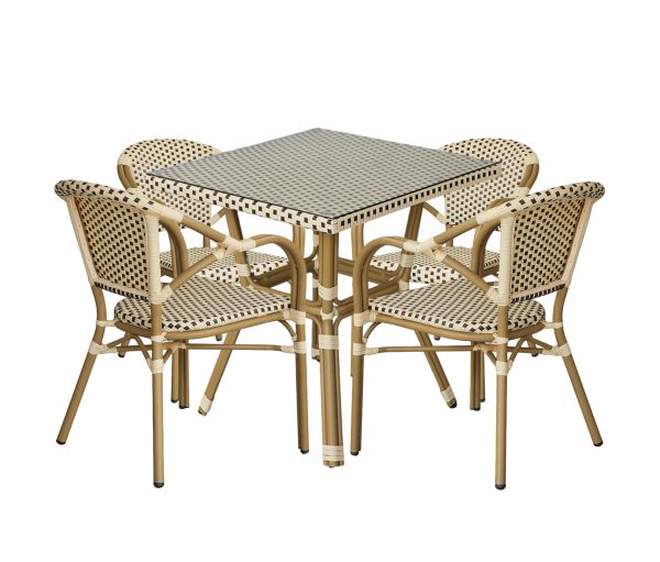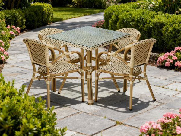 Плетеный стол 4SIS Кабри из искусственного ротанга, цвет бежево-коричневый - ОписаниеПреобразите свой сад, веранду или террасу с помощью элегантного квадратного стола из искусственного ротанга «Кабри»