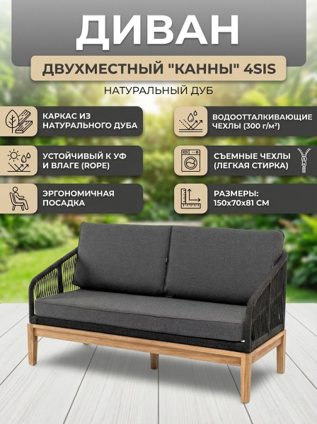 Диван 4SIS "Канны" двухместный, роуп темно-серый круглый, ткань темно-серая 027 - БрендСтрана бренда: Россия Премиальность бренда:Диван 4SIS "Канны" двухместный, роуп темно-серый круглый, ткань темно-серая 027 - Характеристики