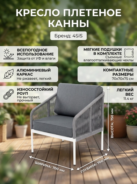 Кресло плетеное из роупа 4SIS «Канны» каркас алюминий серый (RAL7022) муар - Преимущества
