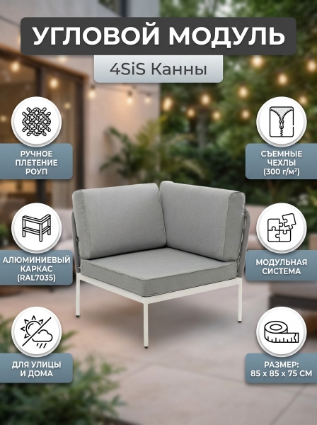 Угловой модуль плетеный из роупа 4SIS «Канны» светло-серый шагрень - БрендСтрана бренда: Россия Премиальность бренда:Угловой модуль плетеный из роупа 4SIS «Канны» светло-серый шагрень - Характеристики