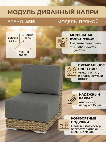 Модуль диванный 4SIS "Капри" прямой, с подушками, ротанг, цвет соломенный - БрендСтрана бренда: Россия Премиальность бренда:Модуль диванный 4SIS "Капри" прямой, с подушками, ротанг, цвет соломенный - Характеристики
