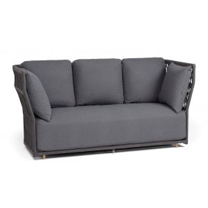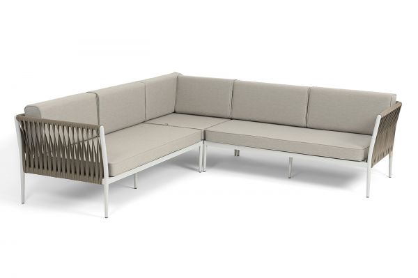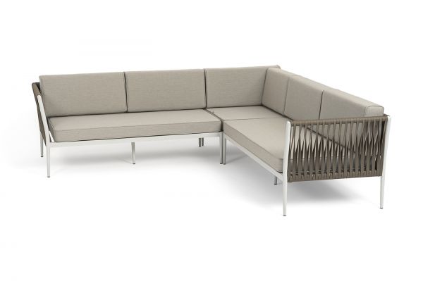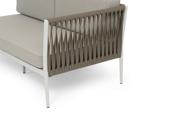 Диван модульный плетеный 4SIS Касабланка каркас алюминий, роуп серо-коричневый, ткань бежевая