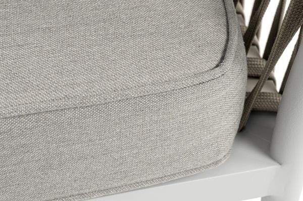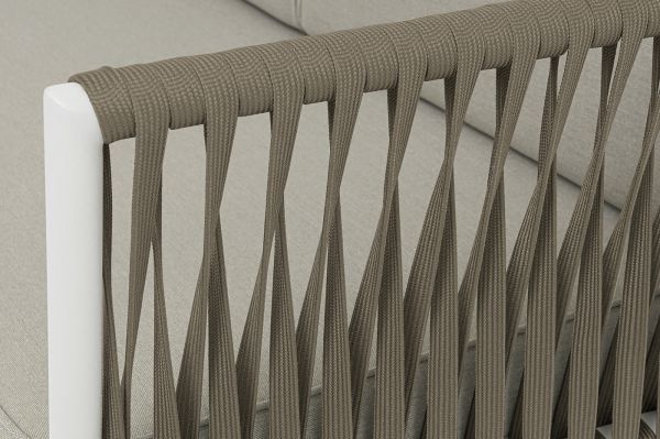 Диван модульный плетеный 4SIS Касабланка каркас алюминий, роуп серо-коричневый, ткань бежевая - ОписаниеДиван имеет алюминиевый каркас, окрашенный порошковой краской в светло-серый цвет. Боковины каркаса вручную оплетены плоским роупом - эластичными синтетическими лентами, изготовленными из высокопрочных полиэфирных волокон. Цвет оплетки - серо-коричневый.