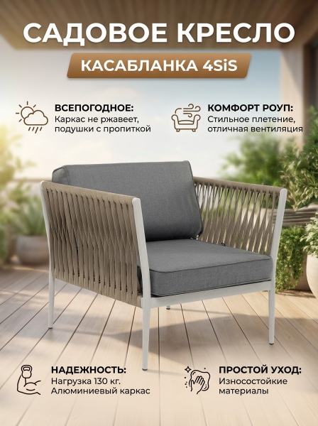 Кресло плетеное из роупа 4SIS «Касабланка» каркас алюминий светло-серый муар - Преимущества
