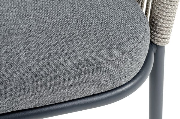 Подушка в комплекте со стулом выполнена из полиэстера 100% плотностью 300гр/м2 с влагоотталкивающей пропиткой. Это надежный и прочный материал, который легко очищается и устойчив к неблагоприятным погодным условиям.