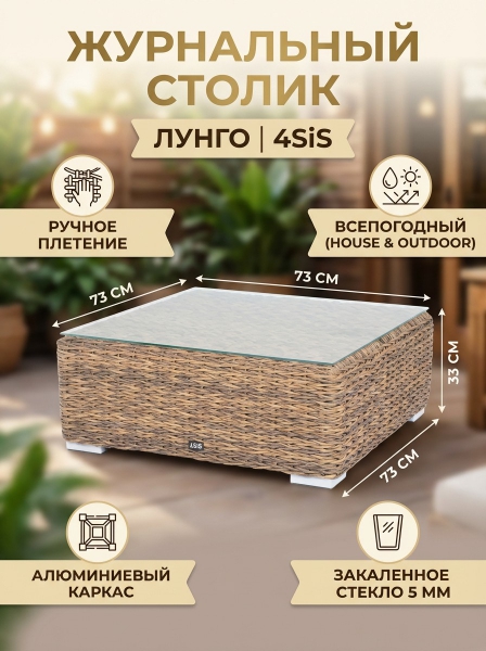 Журнальный столик плетеный (гиацинт) 4SIS «Лунго» - БрендСтрана бренда: Россия Премиальность бренда:Журнальный столик плетеный (гиацинт) 4SIS «Лунго» - Характеристики