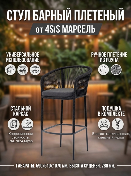 Стул барный плетеный из роупа 4SIS «Марсель» каркас из стали темно-серый (RAL7024) муар - БрендСтрана бренда: Россия Премиальность бренда:Стул барный плетеный из роупа 4SIS «Марсель» каркас из стали темно-серый (RAL7024) муар - Характеристики