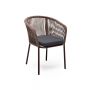 Стул плетеный из роупа 4SIS «Марсель» муар, роуп коричневый круглый, ткань темно-серая - ОписаниеСтул "Марсель" предназначен для организации обеденной зоны или зону лаунж. Выполнен из алюминиевого каркаса коричневого (RAL8016) цвета. Оплетка - современный материал "роуп", которым каркас оплетался вручную. Роуп - это эластичные синтетические ленты, изготовленные из высокопрочных полиэфирных волокон. Цвет оплетки - коричневый.