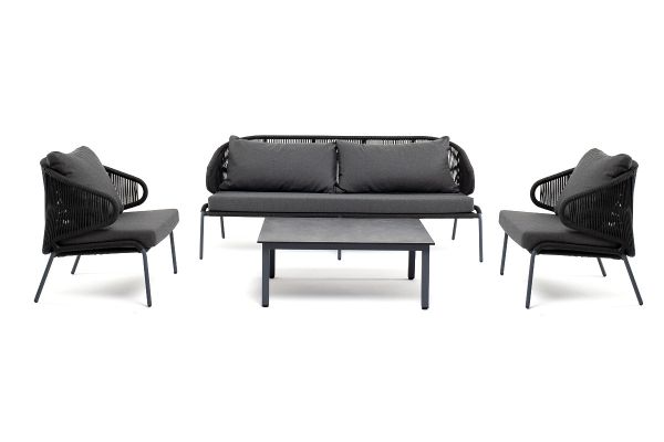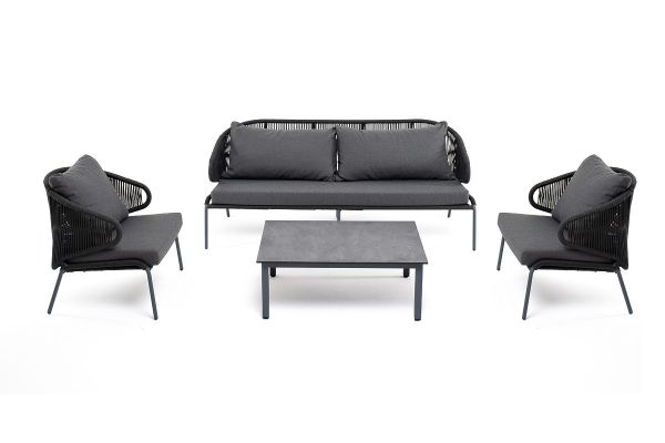 Лаунж-зона 4SIS Милан 5-местная плетеная, каркас алюминиевый серый, роуп темно-серый