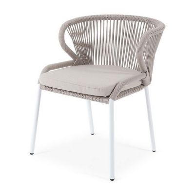 Стул плетеный из роупа 4SIS «Милан» каркас алюминий белый шагрень, роуп бежевый круглый