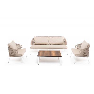 Лаунж-зона 4SIS "Милан" пятиместная, каркас белый, роуп бежевый