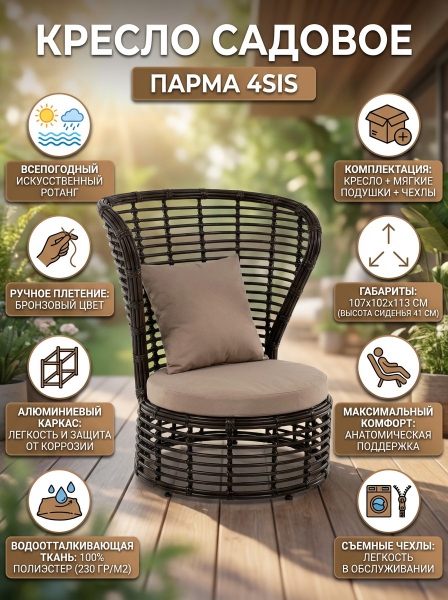 Кресло из искусственного ротанга 4SIS «Парма» - ОписаниеКресло из искусственного ротанга «Парма» станет прекрасным дополнением к месту отдыха.