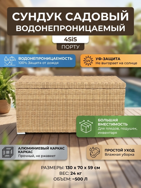 Сундук водонепроницаемый из искусственного ротанга 4SIS «Порту» - ОписаниеСундук предназначен для хранения текстильных изделий, водонепроницаем, поэтому можно использовать на улице, не боясь осадков.