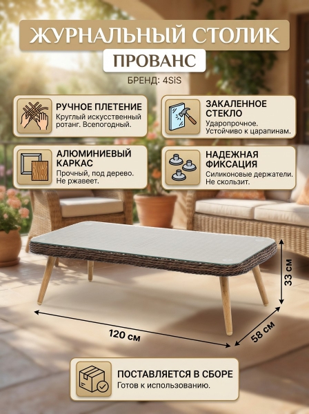 Столик журнальный из ротанга 4SIS «Прованс» - ОписаниеЖурнальный столик «Прованс» является удачным дополнением для кресел и диванов из той же линейки мебели.
