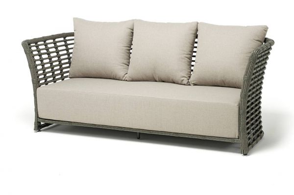 Диван 4SIS "Валенсия" трёхместный из искусственного ротанга, цвет серый - ОписаниеДиван «Валенсия» подходит для размещения сразу трех персон. Его основа из прочного алюминиевого каркаса. Ручное круглое плетение является основным декоративным элементом мебели. Оно выполнено из искусственного ротанга в сером цвете. В комплекте с трехместным диваном идут мягкие подушки для комфортного расположения. Чехлы съёмные бежевого цвета из высококлассного полиэстера с плотностью 300гр/м2. Защитные свойства ткани усиливаются при помощи влагоотталкивающей пропитки.
