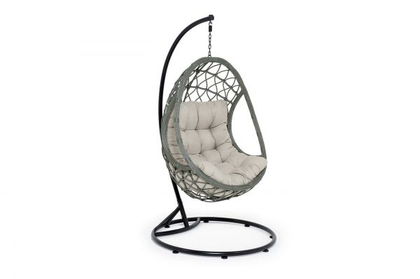 Кресло-кокон 4SIS "Венеция" подвесное, из искусственного ротанга, цвет серый с бежевой подушкой - ОписаниеУютное садовое кресло-кокон «Венеция» для организации лаунж-зоны. Основание изготовлено из стали окрашенного порошковой износостойкой краской черного оттенка, вручную оплетенного круглый искусственным ротангом серого цвета. Этот материал не боится перепадов температуры, прямых солнечных лучей, дождя и ветра. Для удобства сиденья на кресле предусмотрена удлиненная подушка бежевого цвета из полиэстера с влагоотталкивающей пропиткой. Чехол – съёмный, допускается стирать в стиральной машине с использованием порошка.