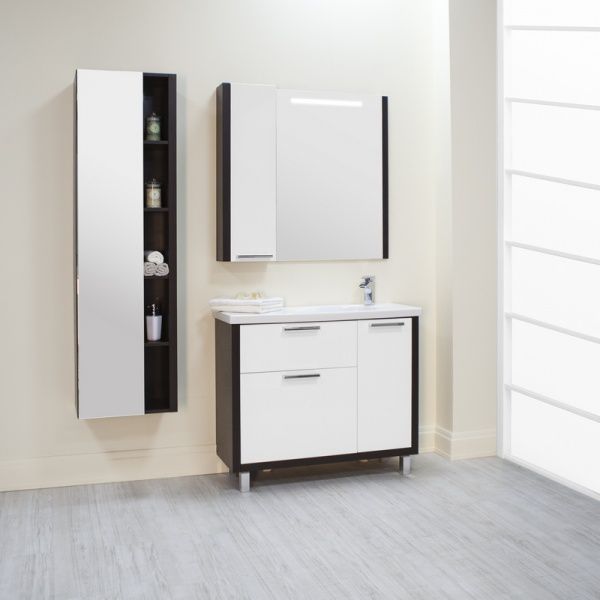Набор мебели Акватон Брайтон 100 - ОписаниеКомфорт в эксплуатации – преимущество, которым обладает мебель для ванной комнаты Акватон Брайтон 100. Набор мебели отличает продуманный универсальный дизайн. Она имеет практичную конструкцию моделей – это дверцы с доводчиками и структурированное внутреннее пространство для хранения ванных принадлежностей, которые ранее загромождали собой комнату. Производитель уделяет внимание не только функциональности, но и внешнему виду своей продукции, разрабатывая уникальный дизайн с учетом актуальных интерьерных тенденций. Все элементы набора идеально гармонируют и с концепцией хай-тек, и с минимализмом в интерьере.