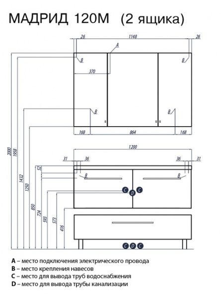 Набор мебели Акватон Мадрид 120 M (два ящика) - БрендСтрана бренда: Россия Страна производства: Россия Премиальность бренда:Набор мебели Акватон Мадрид 120 M (два ящика) - Характеристики