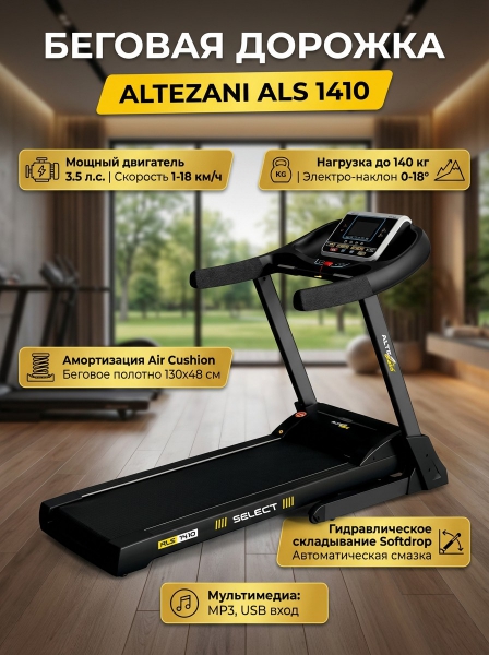 Беговая дорожка Altezani ALS 1410 - ОписаниеСомневаетесь? - Посмотрите рейтинг ТОП-10 по категории «Домашние беговые дорожки»Электрическая беговая дорожка ALS 1410.