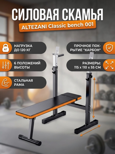 Силовая скамья многофункциональная Altezani Classic bench 001 - ДоставкаДоставка по Москве: бесплатно, 1-2 дняДоставка по Санкт-Петербургу: бесплатно, 2-3 дня Доставка по России: стоимость уточняйте у оператора. Силовая скамья многофункциональная Altezani Classic bench 001 - Отзывы0.0