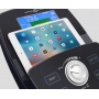 Сидение повышенной комфортности с возможностью горизонтальной регулировки позволяет занять наиболее комфортное положение. Здесь также есть такие опции как транспортировочные ролики и компенсаторы неровностей пола. Таким образом, переместить изделие из одного места в другое не составит большого труда даже для хрупкой девушки, а компенсаторы позволят отрегулировать положение ножек на неровной поверхности. Для воспроизведения аудио файлов к консоли тренажера подключается любое устройство на базе iOS/Android, качественный звук выводится на встроенные колонки. Само устройство можно расположить на предусмотренной для этого подставке и при необходимости зарядить через USB разъем.