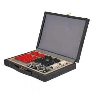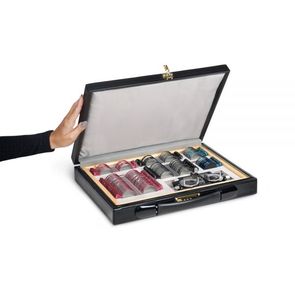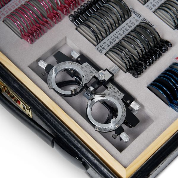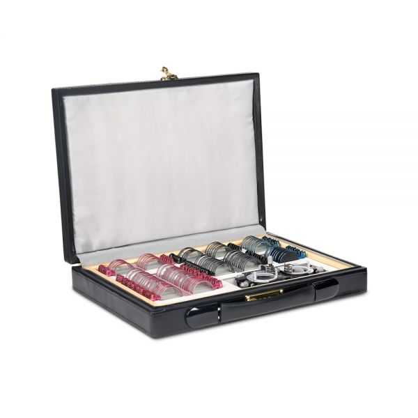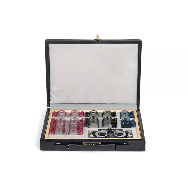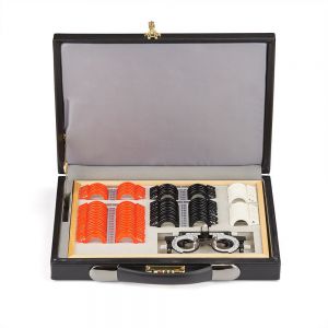 Компактный набор пробных линз различных типов и оптической силы, позволяющий провести обследование зрения с подбором очков. Линзы изготовлены из оптического стекла в прочной металлической обойме с обозначением характеристик на рукоятке и вставляются в универсальную пробную оправу, которая используется для обследования зрения.
