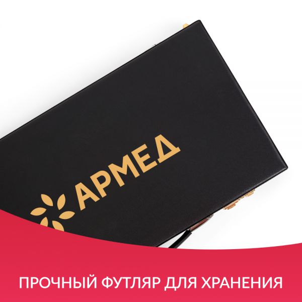 | 1. Универсальная оправа:. | | 2. Универсальная пробная оправа регулируется с помощью шарнирных винтов и подходит для проверки зрения у пользователей с различной формой и размером головы. Два зажима оправы удерживают до 4 линз каждый, позволяя точно выбрать подходящую диоптрию. Регулировка оправы даёт возможность изменять ось цилиндрических и призматических линз и межзрачковое расстояние, а также найти удобное положение подушки для носа. | | 3. Металлическая обойма:. | | 4. Все линзы в наборе имеют прочную металлическую обойму, что делает их более долговечными при интенсивном использовании. Оправа не содержит острых краёв, которые могли бы поранить пациента или врача. Материал обоймы устойчив к коррозии. Для удобства поиска линзы с отрицательными диоптриями имеют обоймы розового цвета, а с положительными — чёрного цвета. | | 5. Сферические линзы:. | | 6. Набор включает сферические отрицательные (-) (вогнутые) и положительные (+) (выпуклые) линзы силой от 0,25 до 12,00 дптр. Выпуклые линзы используются для исследования гиперметропии (слабой клинической рефракции), вогнутые — для исследования миопии (сильной клинической рефракции) и старческой дальнозоркости. | | 7. Цилиндрические линзы:. | | 8. Цилиндрические линзы предназначены для обследования астигматизма. В набор входят отрицательные (-) вогнутые и положительные (+) (выпуклые) линзы от 0,25 до 6,00 дптр. | | 9. Призматические линзы:. | | 10. Данные линзы используются для проверки косоглазия и скрытого косоглазия, а также для тренировки глаз. В наборе представлены парные призматические линзы оптической силой от 0,5 до 3,00 пр дптр. | | 11. Призматические линзы:. | | 12. Данные линзы используются для проверки косоглазия и скрытого косоглазия, а также для тренировки глаз. В наборе представлены парные призматические линзы оптической силой от 0,5 до 3,00 пр дптр. | | 13. Вспомогательные линзы:. | | 14. Для более детальной диагностики зрения в наборе есть вспомогательные линзы: цветные светофильтры (красный и зелёный) для обследования цветового восприятия, плоскопараллельная пластина для диагностики ложной слепоты, точечная и щелевая диафрагмы для диагностики и коррекции астигматизма, а также окклюдер для покрытия необследуемого глаза. | | 15. Защитный кейс:. | | 16. Все элементы набора помещаются в удобный и прочный кейс, защищающий их от повреждений и загрязнения. Внутри предусмотрены отсеки для линз с указанием их типа и оптической силы для удобства поиска. Кейс имеет застёжку и ручку для переноски. |