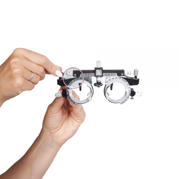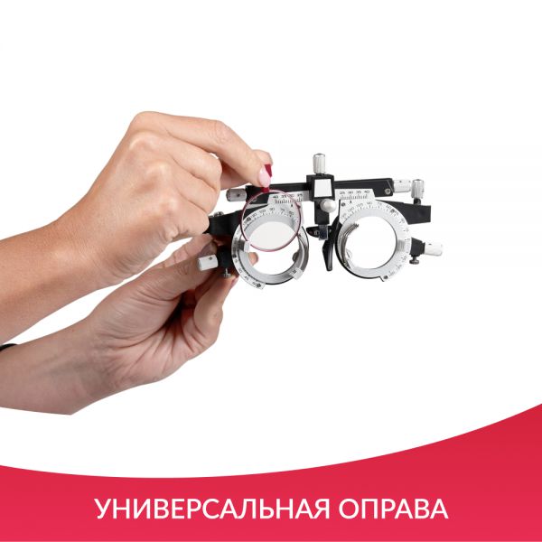 | | Универсальная оправа: | Универсальная пробная оправа регулируется с помощью шарнирных винтов и подходит для проверки зрения у пользователей с различной формой и размером головы. Два зажима оправы удерживают до 4 линз каждый, позволяя точно выбрать подходящую диоптрию. Регулировка оправы даёт возможность изменять ось цилиндрических и призматических линз и межзрачковое расстояние, а также найти удобное положение подушки для носа.