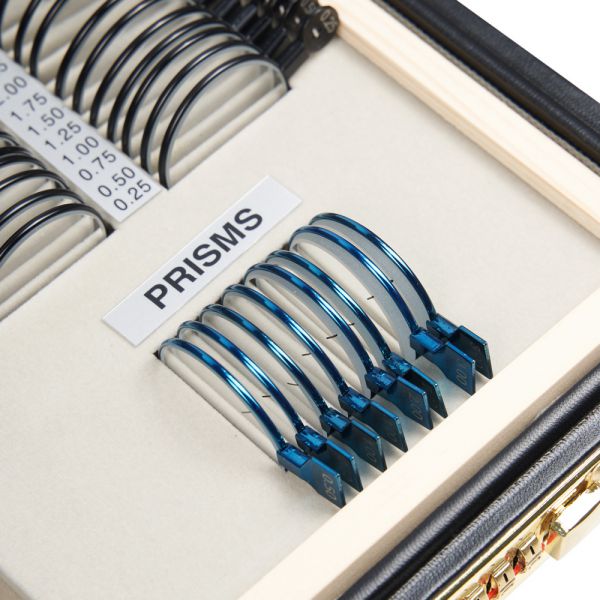 | | Призматические линзы: | Данные линзы используются для проверки косоглазия и скрытого косоглазия, а также для тренировки глаз. В наборе представлены парные призматические линзы оптической силой от 0,5 до 3,00 пр дптр.