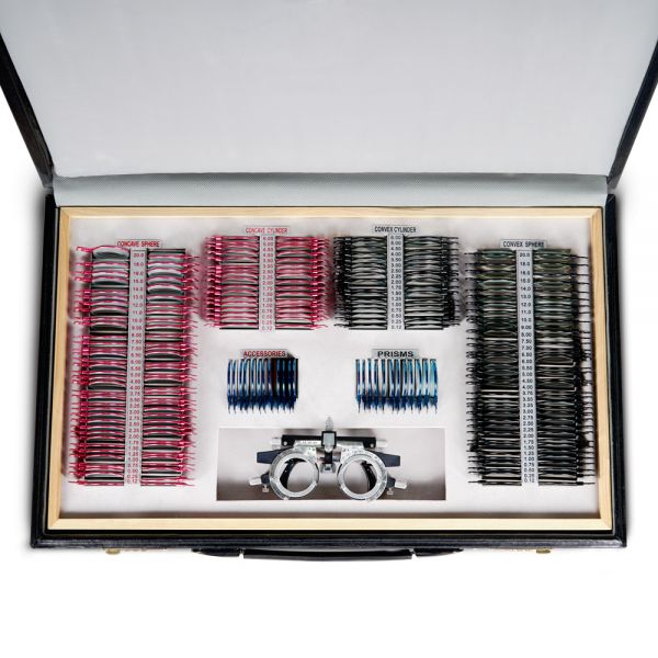 Полный набор пробных линз, позволяющий провести углублённую диагностику зрения благодаря широкому диапазону диоптрий и большому выбору вспомогательных линз. Все линзы изготовлены из оптического стекла в прочной металлической обойме с обозначением характеристик на рукоятке и вставляются в универсальную пробную оправу, которая используется для обследования зрения.