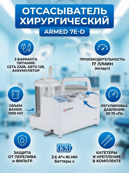 Отсасыватель хирургический электрический Armed 7Е-D - Преимущества