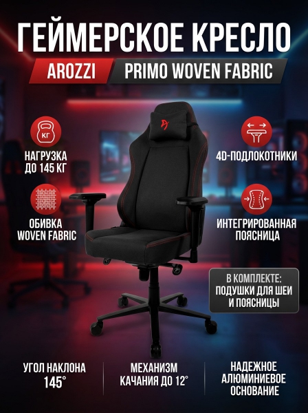 Геймерское кресло Arozzi Primo Woven Fabric - Black - ДоставкаДоставка по Москве: бесплатно, 1-2 дняДоставка по Санкт-Петербургу: бесплатно, 2-3 дня Доставка по России: стоимость уточняйте у оператора. Геймерское кресло Arozzi Primo Woven Fabric - Black - Отзывы0.0