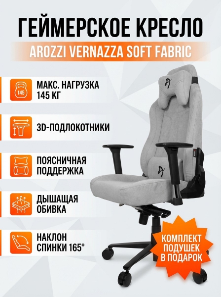 Геймерское кресло Arozzi Vernazza Soft Fabric Light Grey - ДоставкаДоставка по Москве: бесплатно, 1-2 дняДоставка по Санкт-Петербургу: бесплатно, 2-3 дня Доставка по России: стоимость уточняйте у оператора. Геймерское кресло Arozzi Vernazza Soft Fabric Light Grey - Отзывы0.0