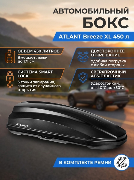 Автомобильный бокс Atlant Breeze XL 450 л - ДоставкаДоставка по Москве: бесплатно, 1-2 дняДоставка по Санкт-Петербургу: бесплатно, 2-3 дня Доставка по России: стоимость уточняйте у оператора. Автомобильный бокс Atlant Breeze XL 450 л - Отзывы0.0