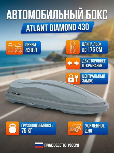 Автомобильный бокс Atlant Diamond 430 л (глянцевый) - БрендСтрана бренда: Россия Страна производства: Россия Премиальность бренда:Автомобильный бокс Atlant Diamond 430 л (глянцевый) - Характеристики