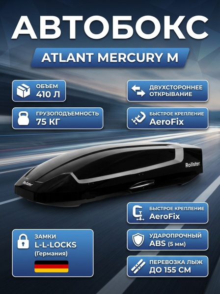 Автобокс Atlant Mercury M, чёрный глянец, 410 л. - Преимущества