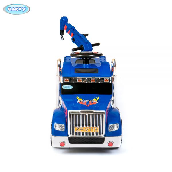 Электромобиль для детей Barty ZPV100 синий - ОписаниеДетский электромобиль Barty ZPV100 имеет внешний вид большого тягача. Подойдет для катания детей от 1 года до 4 лет. Машинка имеет пластмассовый кузов. Пластмассовые колеса имеют центральные прорезиненные накладки. Мотор мощностью 20 ватт позволяет разгоняться до 4 км/ч. Электромобиль может ехать вперед и назад. На приборной панели есть кнопка для переключения направления езды.